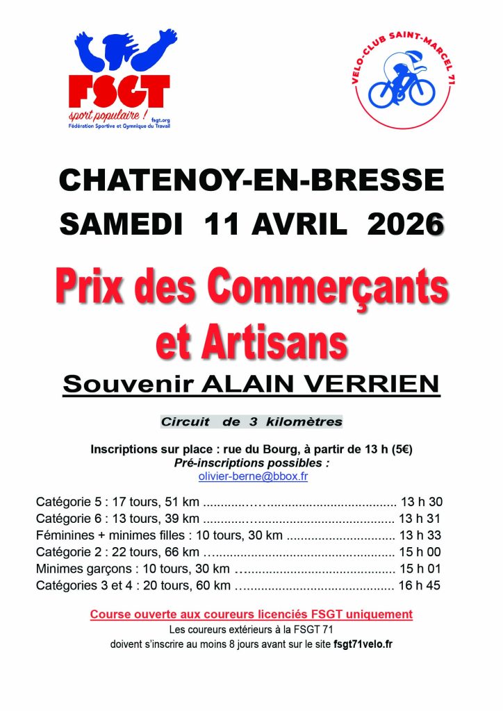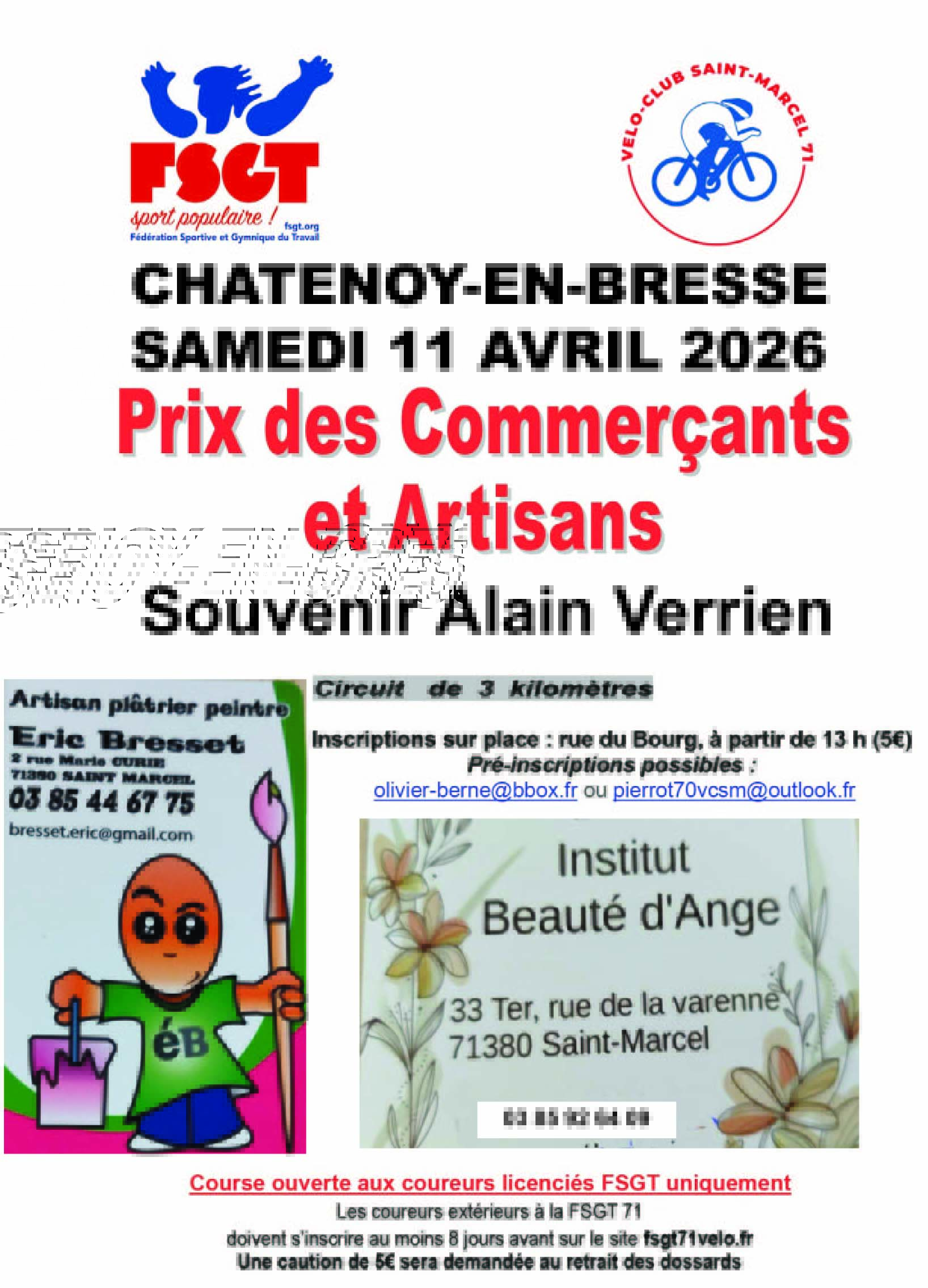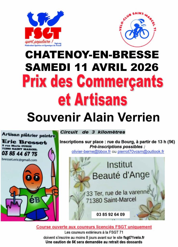 Prochaine manifestion du VCSM : le prix des commerçants et artisans de Saint-Marcel et Châtenoy sur la commune de Châtenoy-en-Bresse, le samedi 11 avril, en souvenir d’Alain Verrien.